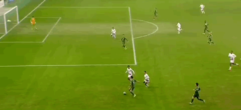 第11分钟,王刚传中法比奥背身拿球后挑传身后,张玉宁没有跟上